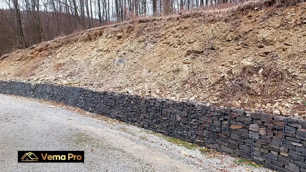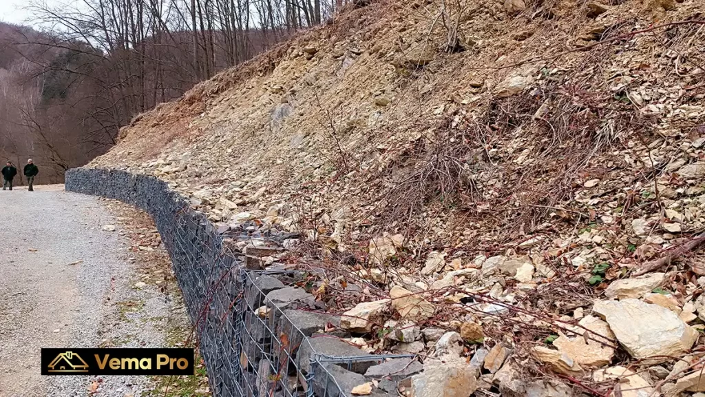 Stará 15 ročná gabiónová oporná stena v okrese Zlaté Moravce, ktorá už má očividne niečo za sebou sme napojili nový 50 cm vysoký gabión. Stará gabiónová stena bola skladaná po samostatných jednotlivých košoch, ktoré boli vedľa seba a na seba ukladané. My sme novú vrstvu gabiónu spojili so starými košmi a  zviazali do jedného celku. Gabiónová stena má dĺžku 50 metrov a zvýšili sme ju z 1 metra na 1,5 metra. Plus sme zvlášť spravili 7 metrov dlhý a 50 centimetrov hrubý gabión. Ako kameň na výplň sme použili vápenec vo frakcii 70/150, ktorý sme ukladali do gabiónových košov. Kompletná realizácia trvala 2 dni.