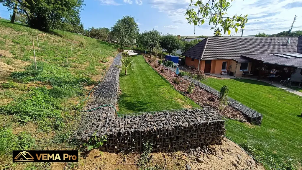 V tomto projekte sme realizovali dva gabiónové oporné múry: