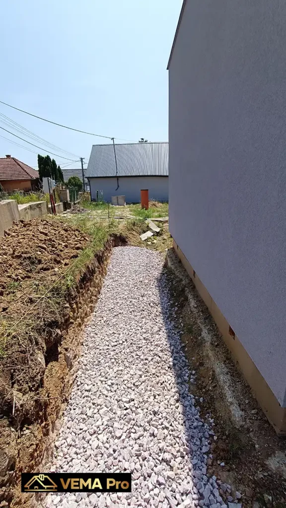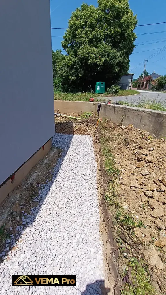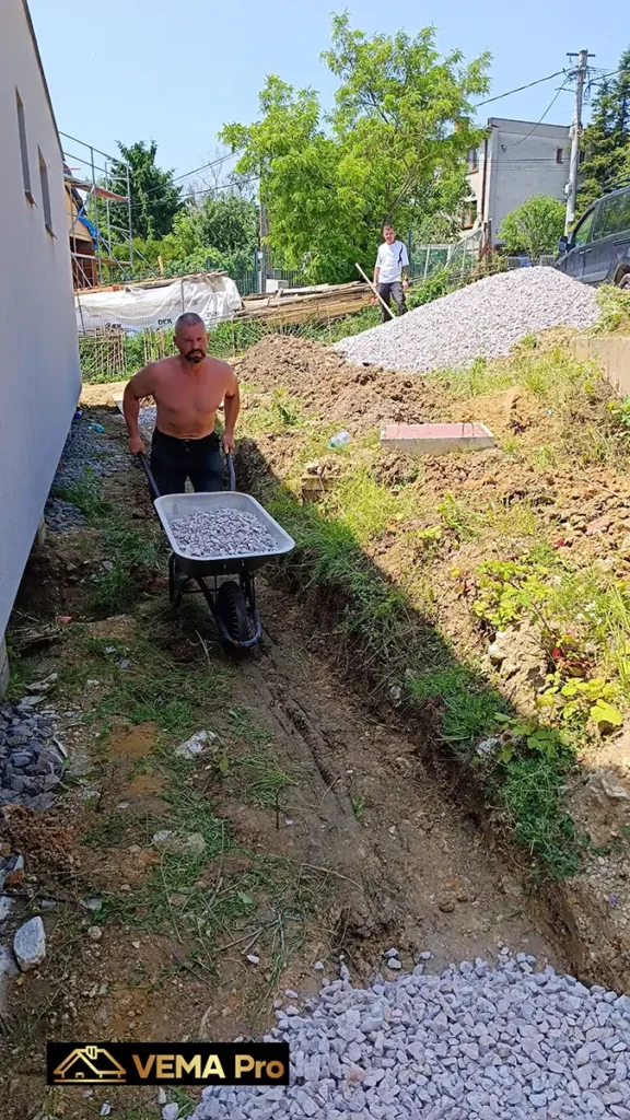 - Deň 1: Precízne základy (100% ručne) Prvý deň sme venovali kľúčovej príprave základov. Náš tím ručne vykopal 19 metrov dlhú jamu do hĺbky 30 cm. Následne sme ju vyplnili kameňom (frakcia 32/63), dokonale vyrovnali a dôkladne zhutnili, aby sme zabezpečili maximálnu stabilitu budúceho plota.